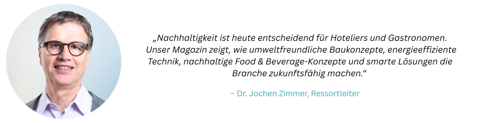 Print-Special Nachhaltigkeit zeigt, wie sich Betriebe ihren Gästen als verantwortungsbewusste Gastgeber präsentieren können und beleuchtet alle relevanten Fragen rund um umweltfreundliches Handeln. Präsentieren Sie Fachkräften, wie Ihre Produkte und Innovationen zur Verbesserung der Öko-Bilanz beitragen. Worum es im Detail geht, erklärt Ihnen Redakteur Dr. Jochen Zimmer: