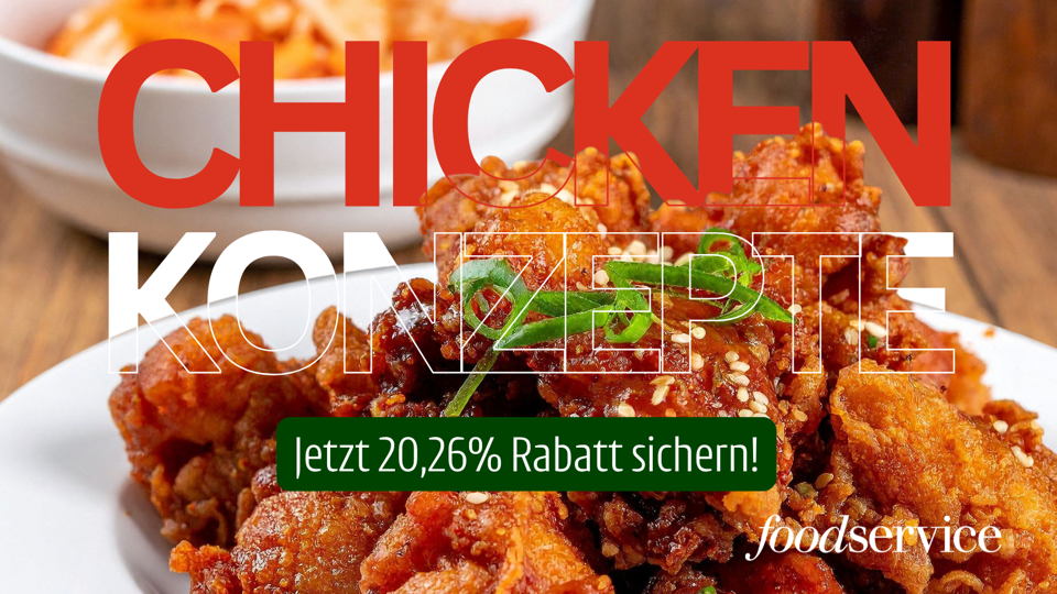 Neujahrsangebot für die foodservice 01/26 starten Sie gleich zu Jahresbeginn sichtbar durch. Positionieren Sie jetzt Ihre Marke im Umfeld "Chicken-Konzepte" und profitieren Sie von einem starken Jahresauftakt und sichern sich dabei einen Preisvorteil von